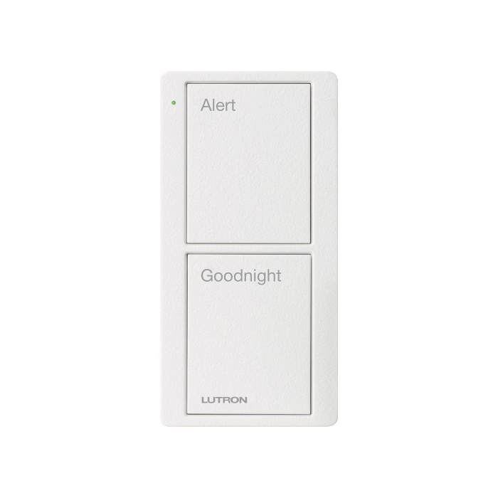Lutron 2-Button Scene Pico Smart Remote - Pre-engraved Text ("Alert/Goodnight") - Snow