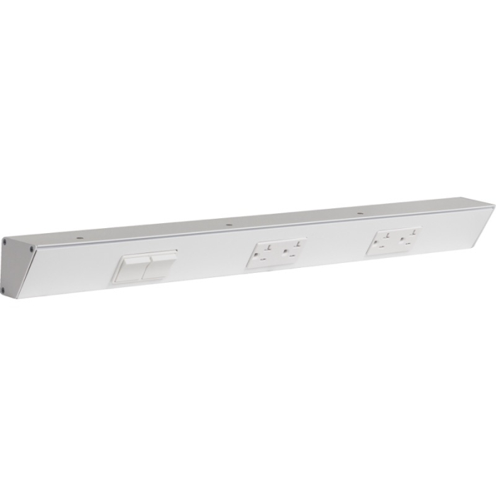 Task Lighting 24" Angled Power Strip - 2 White Duplex Receptacles - 2 White Left Side Switches - White