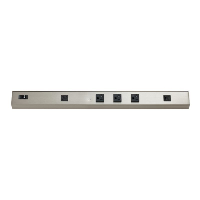 Westgate 24" Angled Power Strip - 3 Receptacles - 2 USB-A/C - Brushed Nickel