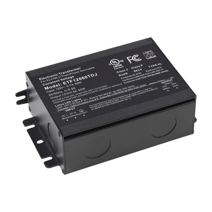 Lotus 60W Dimmable Electronic Transformer in J-Box - 120V Input / 12V DC Output