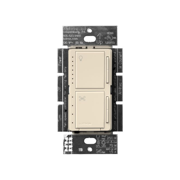 1. Lutron Maestro Dual LED+ Dimmer and Fan Control - Single Pole - Light Almond