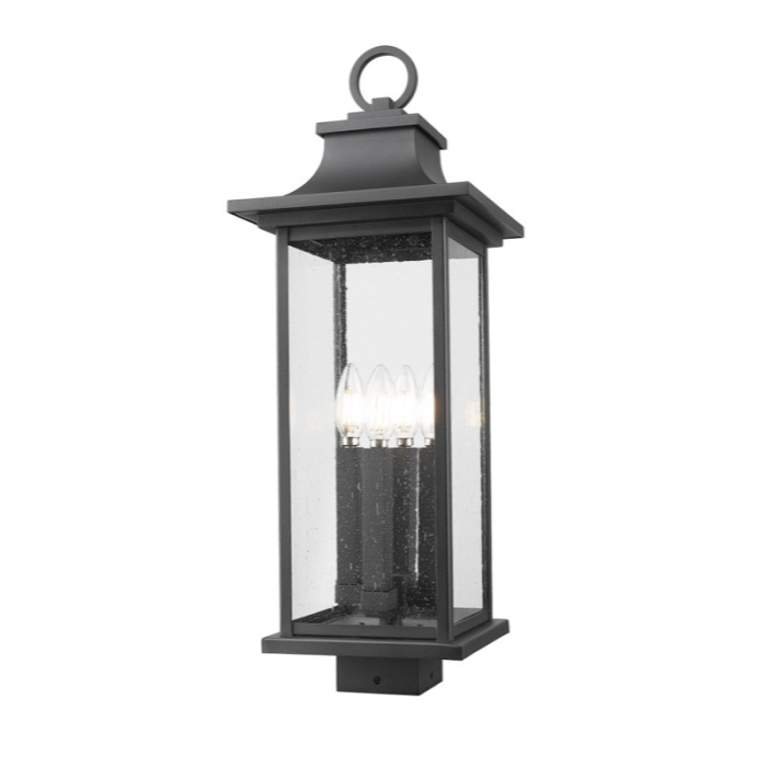 Z-Lite Tiberius 4-Light Outdoor Square Post Mount Fixture - 120V - Black / Clear Seedy